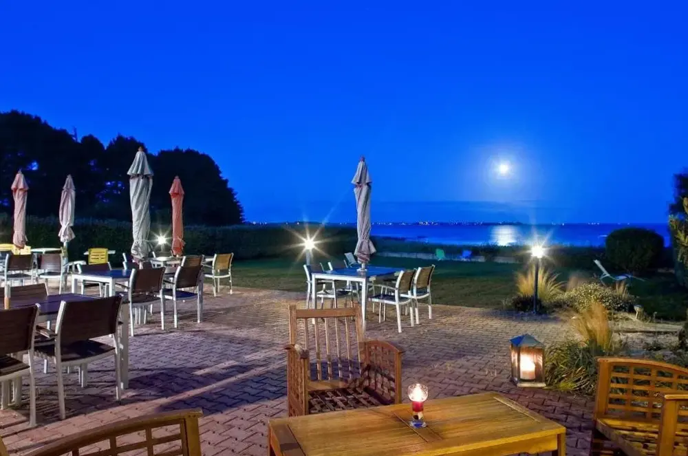 Hôtel Restaurant Le Mur du Roy offers accommodations located at 43 Chemin du Mur du Roy, 56370 Sarzeau, France. The establishment features a range of facilities including a bar, beachfront access, a restaurant, and complimentary breakfast. Guests can enjoy free parking and wireless internet connectivity. Non-smoking room options are available alongside family-friendly suites. Nearby attractions include Roaliguen Beach just 6 kilometers away, Plage de Suscinio at 2.7 kilometers, and Plage de Penvins within 1.3 kilometers. Additional nearby points of interest encompass Abbatiale Saint-Gildas (12 km), Moulin à Marée (14 km), and Pomme d'Amour (15 km). Dining choices near the property consist of Crêperie les Salines situated 900 meters away and Aux joyeux sinagots approximately 13 kilometers distant.
